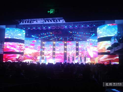 旋轉(zhuǎn)顯示屏在現(xiàn)代舞臺(tái)設(shè)備中使用比較頻繁,主舞臺(tái)區(qū)顯示屏拼接時(shí)接合后區(qū)大屏形成一幅完整的畫面,顯示屏旋轉(zhuǎn)打開后又可以當(dāng)塊側(cè)幕屏使用,從而達(dá)到現(xiàn)代舞臺(tái)表現(xiàn)形式和傳統(tǒng)舞臺(tái)表現(xiàn)形式的快速轉(zhuǎn)換。控制系統(tǒng)可編程控制。